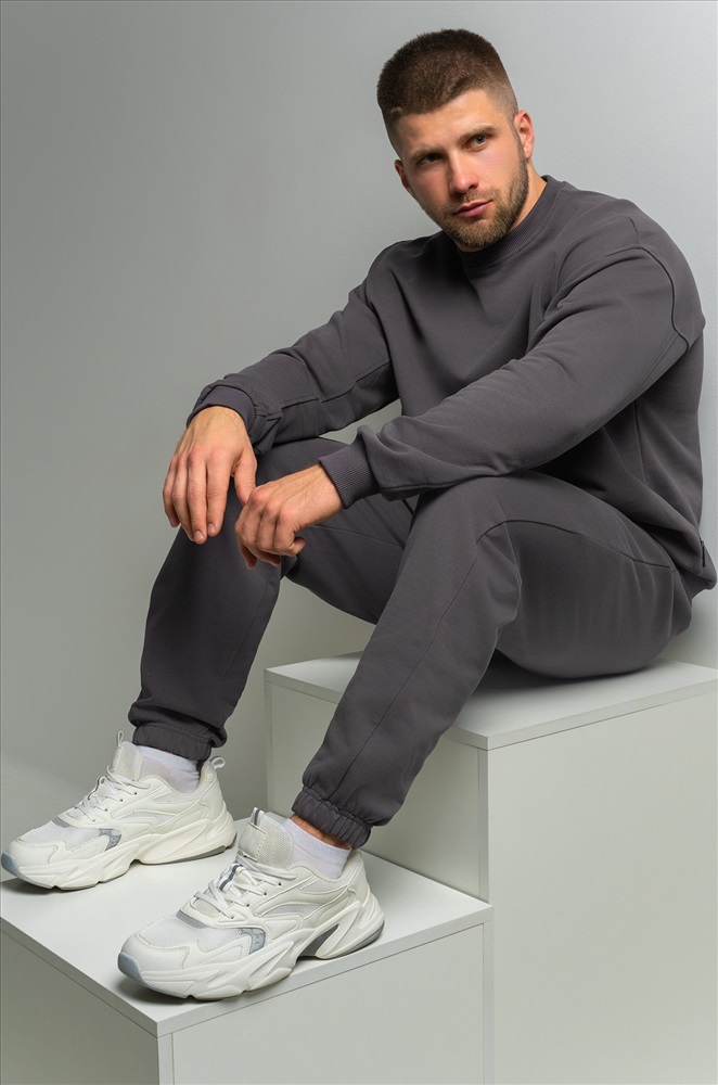 Однотонный серый костюм oversize для мужчин выполнен из 100% хлопка. Футер известен своей мягкостью и воздухопроницаемостью, даря легкость и уют в прохладные дни. Трикотаж обеспечивает идеальную посадку и несомненный комфорт, что делает его незаменимым в прохладные осенние и зимние дни.Лаконичный дизайн позволяет сочетать модель со многими вещами из твоего гардероба.