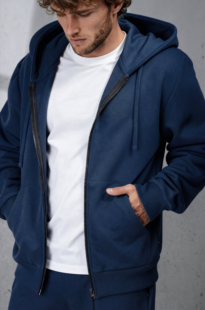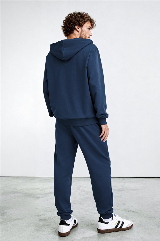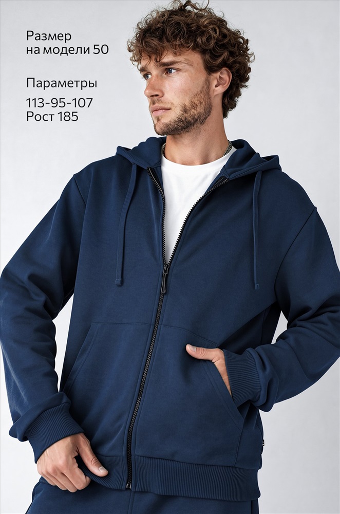 Преимущества: — однотонный костюм со штанами выполнен из плотного футера трехнитки; — костюм с толстовкой с глубоким капюшоном дарит уют и комфорт; — благодаря эластичными манжетам рукава и штанины не задираются при движении; — карман-кенгуру согревает руки в прохладную погоду; — пояс со шнурком позволяет регулировать посадку брюк; — благодаря добавлению полиэстера хлопковый костюм сохраняет форму и цвет даже после многократных стирок; — темно-синий костюм идеален для осени и весны; — спортивный костюм с брюками подойдет для пробежек и прогулок. Трикотажный костюм из хлопка идеален для осенних и весенних дней.