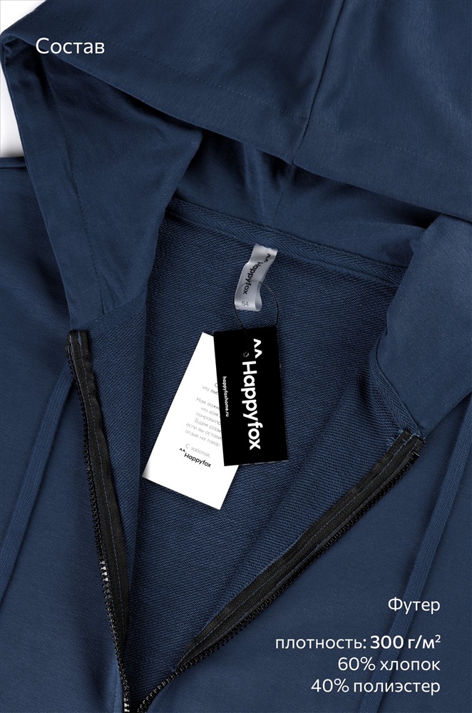Бренд: Happyfox Серия: Happyfox- Sports Family Страна: Узбекистан Состав: 60% хлопок, 40% полиэстер Материал: Футер трёхнитка Плотность ткани: 300 г/м2 Цвет: джинс