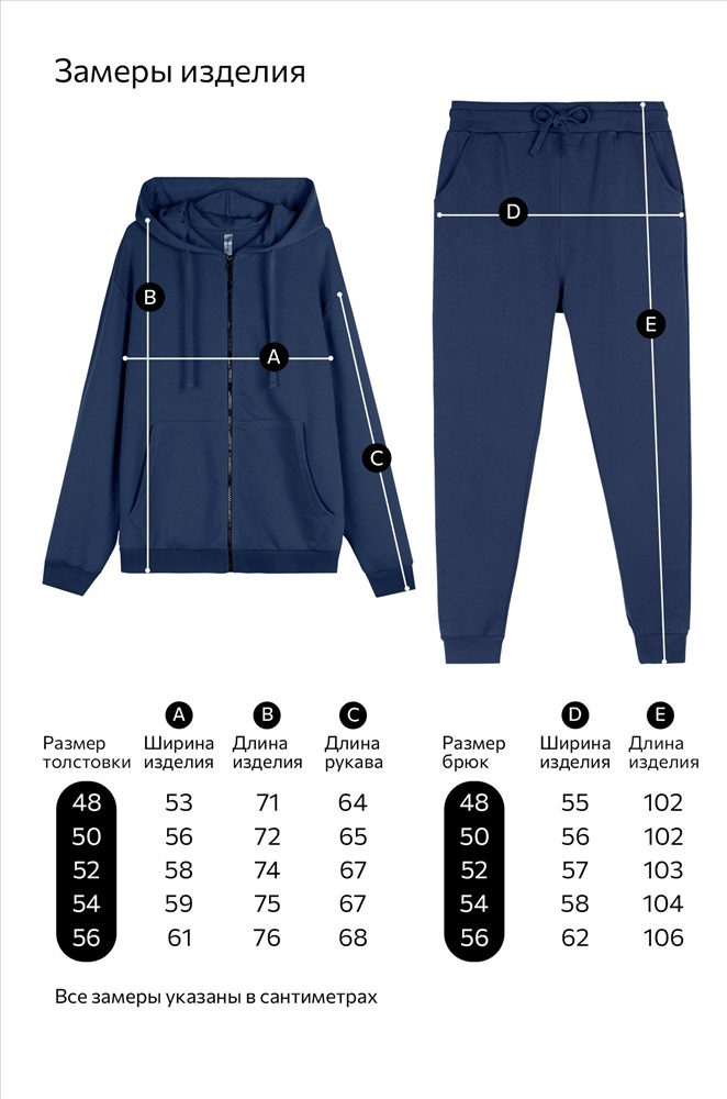 брюки: длина внеш. шва:102 см; длина внут. шва:72 см; ширина по бедрам:55 см. Размер 50: толстовка: длина:72 см; ширина:56 см; длина рукава внешняя:65 см; длина рукава внутренняя:55 см. брюки: длина внеш. шва:102 см; длина внут. шва:72 см; ширина по бедрам:56 см. Размер 52: толстовка: длина:74 см; ширина:58 см; длина рукава внешняя:67 см; длина рукава внутренняя:55 см. брюки: длина внеш. шва:103 см; длина внут. шва:73 см; ширина по бедрам:57 см. Размер 54: толстовка: длина:75 см; ширина:59 см; длина рукава внешняя:67 см; длина рукава внутренняя:56 см. брюки: длина внеш. шва:104 см; длина внут. шва:73 см; ширина по бедрам:58 см. Размер 56: толстовка: длина:76 см; ширина:61 см; длина рукава внешняя:68 см; длина рукава внутренняя:56 см. брюки: длина внеш. шва:106 см; длина внут. шва:74 см; ширина по бедрам:62 см. *замеры выборочные, могут незначительно отличаться. Комментарии к товару