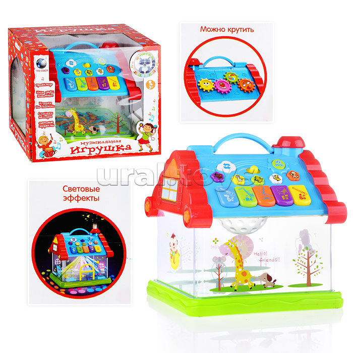 • Работает от 3-х батареек "АА" (не входят в комплект). • Функции: - проектор. - звуки животных и мелодии. - 5 клавиш пианино. • Материал: пластик. • Соответствует требованиям безопасности продукции. • Для детей от 3-х лет.