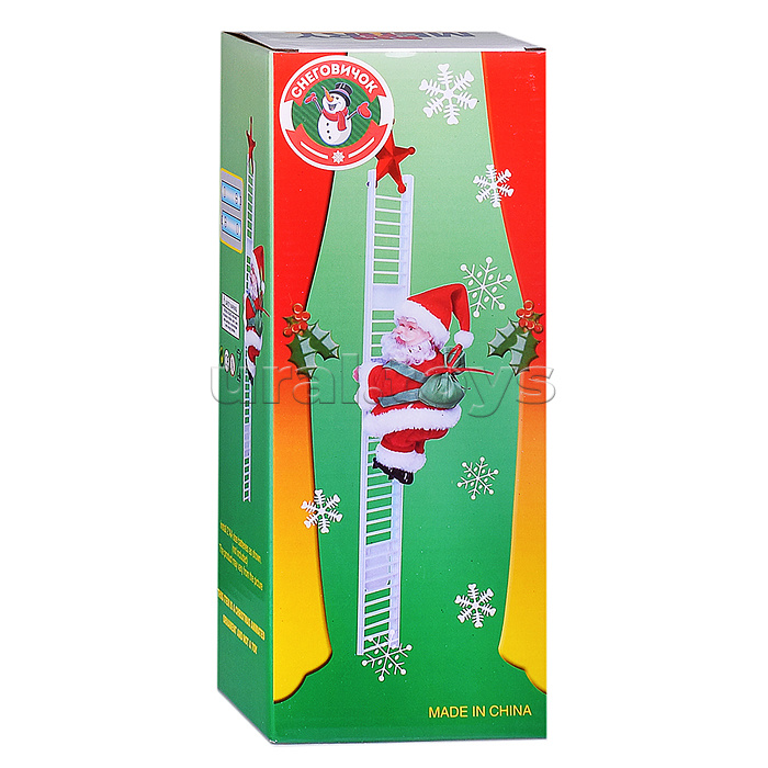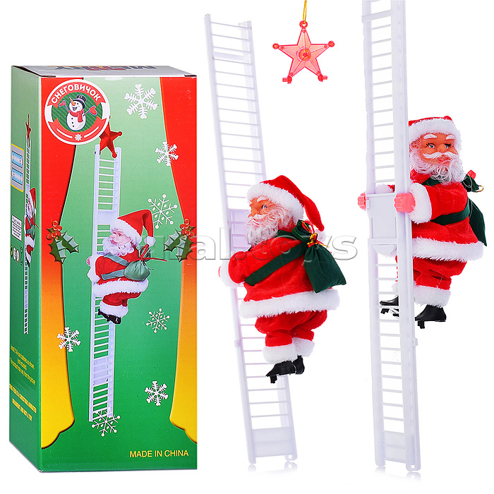 Код: 375511 Страна производитель: Китай Размеры упаковки: 37 x 19 x 8 см Количество в коробке: 48 Поднимается по лестнице и спускается с нее под песню "Jingle Bells". Работает от 2-х батареек "АА" (не входят в комплект). Размер лестницы: 65 х 6 х 1 см. Рост игрушки: 18 см. Материал: пластик, текстиль. Для детей от 3-х лет. Соответствует требованиям безопасности продукции. Комментарии к товару
