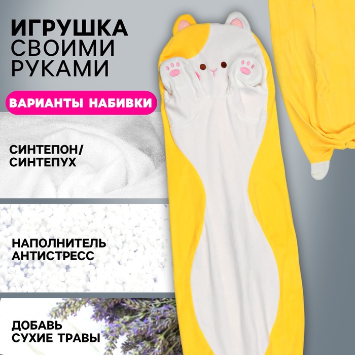 Творчество с пользой Создание игрушки своими руками развивает мелкую моторику, креативное мышление и позволяет почувствовать гордость за готовый результат. Это отличный способ провести время с пользой, наслаждаясь процессом и создавая что-то по-настоящему особенное. Выберите наполнитель по своему вкусу, добавьте детали — и мягкая игрушка станет отражением вашего настроения или оригинальным подарком для близкого человека. ДополнительноРазмер кота — 90 см. Комментарии к товару