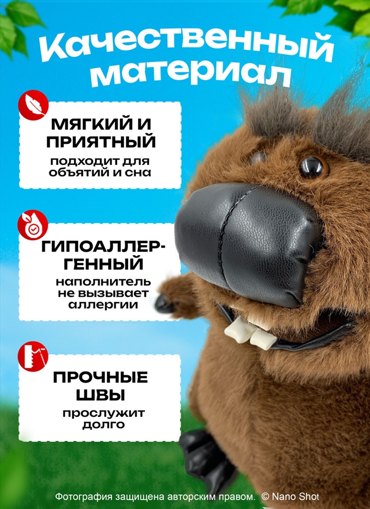Страна: Китай Знакомьтесь, это Бобёр — пушистый комочек радости и веселья! Его фирменные густые брови сразу поднимают настроение, а добрые глазки и широкая улыбка влюбят в себя с первого взгляда. Размер 30 см делает игрушку идеальным компаньоном как для малышей, так и для взрослых. Мягкая игрушка Бобер— идеальный подарок для детей и взрослых. Эта плюшевая игрушка выполнена в виде бобра, которая обязательно понравится всем членам семьи. Изготовленная из высококачественных материалов, игрушка обладает мягкой текстурой и снабжена гипоаллергенным наполнителем, что делает ее безопасной даже для самых маленьких. Плюшевый бобр прекрасно подходит для веселых игр и обнимашек, становясь верным другом вашего ребенка. Пушистый и приятный на ощупь, он создаст уютную атмосферу в любой детской комнате и украсит ее интерьер. С ним удобно засыпать, ведь он предназначена не только для активных игр, но и для спокойного сна, создавая комфорт и чувство безопасности. Плюшевый бобренок станет неотъемлемой частью ритуала приготовления ко сну, помогая детям расслабиться и быстрее уснуть. Мягкая игрушка Бобр — это не только развлечение для детей, но и стильный элемент декора, который украсит любую комнату. Убедитесь, что ваш ребенок будет счастлив этой игрушке, которая может стать его любимым компаньоном. Подойдет также в качестве креативного подарка на для взрослых членов семьи. Комментарии к товару