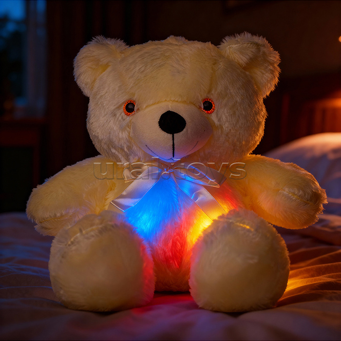Код: 486296 Штрихкод: 6978459061559 Страна производитель: Китай Размеры упаковки: 45 x 30 x 15 см Количество в коробке: 50 • Размеры игрушки (ДхШхВ): 27х14х45 см. • Материалы: искусственный мех, текстиль. • Наполнитель: полиэфирное волокно. • Пластиковые глаза. • При нажатии на лапу светится разными меняющимися цветами. • Свет работает от 2-х батареек "АА" (не входят в комплект) • Соответствует требованиям безопасности продукции. • Для детей от 3-х лет. Комментарии к товару