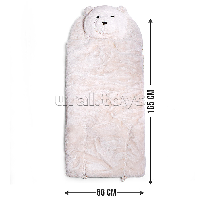 • Размеры в застёгнутом виде (с головой): 165х66 см. • Застёгивается на молнию. • Размеры одеяла: 132х129 см. • Материалы: искусственный мех, текстиль. • Соответствует требованиям безопасности продукции. • Для детей от 3-х лет.