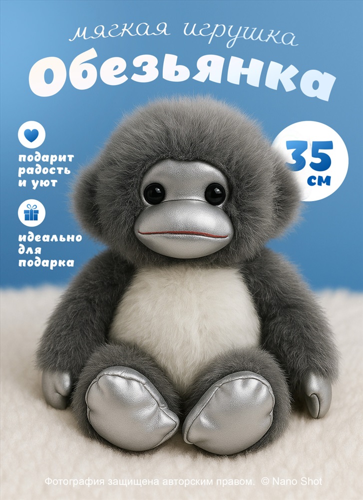 Обезьянка представлена в двух цветах: коричневом и сером, что позволяет выбрать вариант, который лучше всего подойдет к интерьеру или предпочтениям получателя. Размер игрушки составляет 35 см, что делает ее удобной для переноски и размещения в любом уголке дома. Эта мягкая обезьяна станет отличным подарком на день рождения, Новый год или любой другой праздник, вызывая радость и улыбки у детей и взрослых.