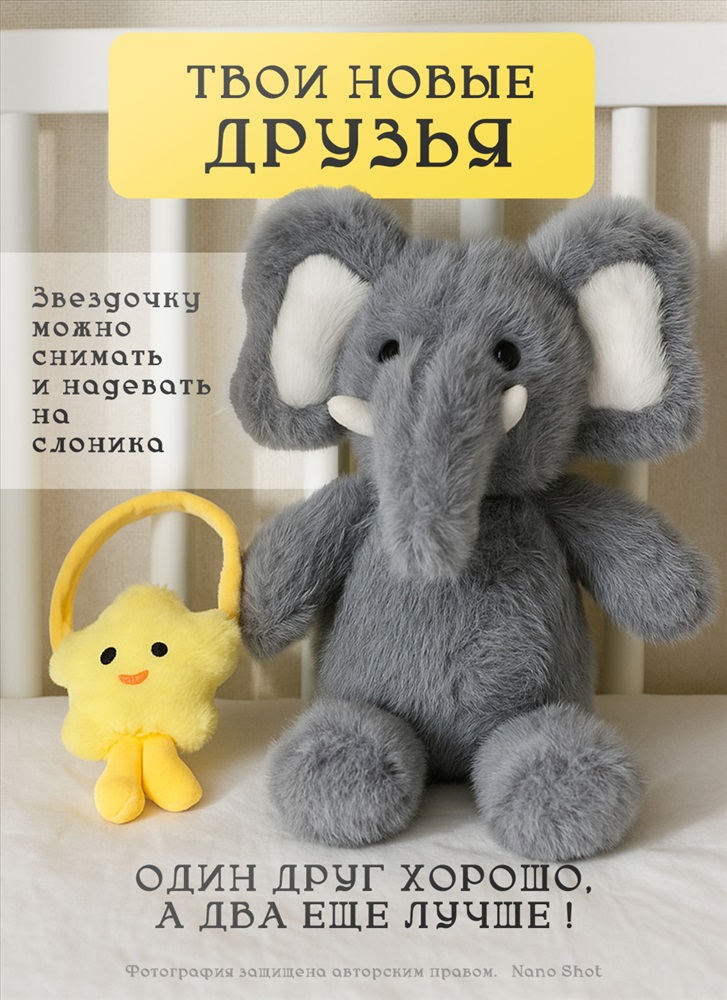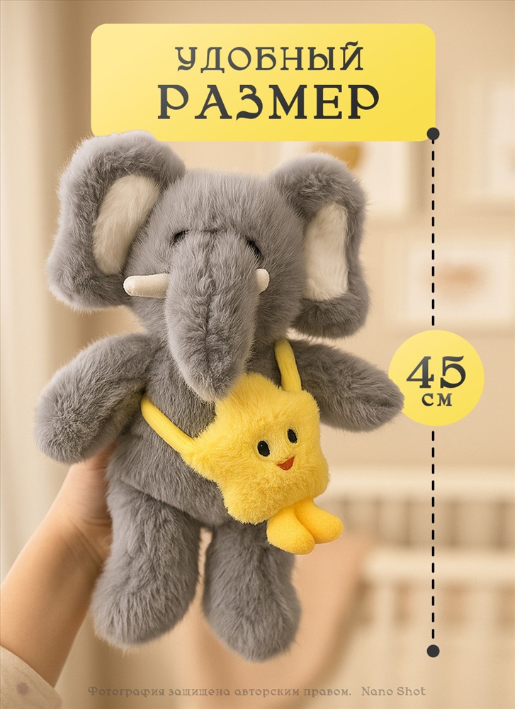 Игрушка станет отличным подарком на день рождения или Новый год, порадует как сына, так и дочку. Плюшевый слон с звездочкой — это не просто игрушка, а настоящий друг, который будет сопровождать вашего ребенка в его приключениях. Приятный на ощупь материал и продуманный дизайн делают его идеальным выбором для подарка.
