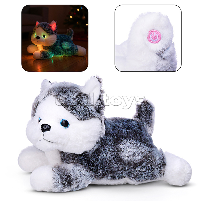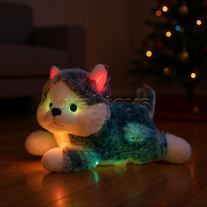 • Размеры игрушки: 35 см. • Материалы: искусственный мех, текстиль. • Наполнитель: синтепон. • Пластиковые глаза и нос. • Светится в темноте (работает от 2-х батареек "АА" не входят в комплект). • Соответствует требованиям безопасности и стандартам качества продукции. • Для детей старше 3-х лет.