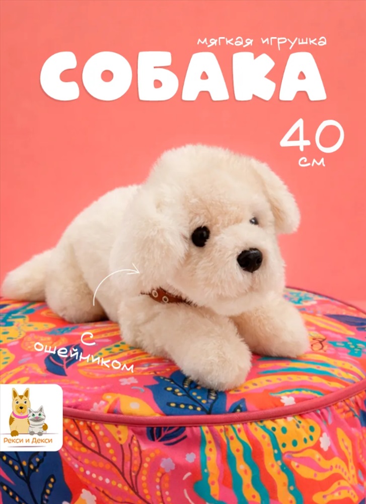 Мягкая игрушка собака в ошейнике 40 см, белая