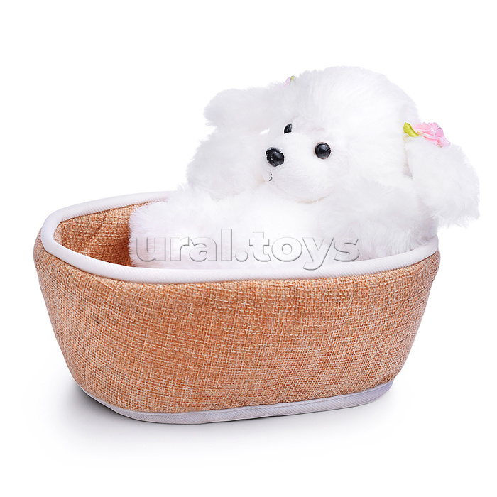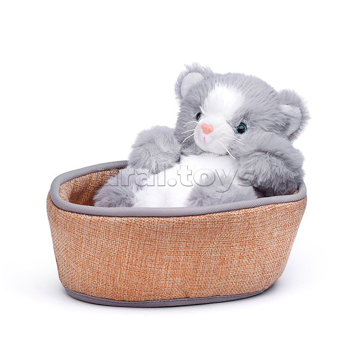 • Размеры игрушки: 15 см. • Размер лежанки: 20х14х8 см. • Материалы: искусственный мех, текстиль. • Наполнитель: синтепон. • Пластиковые глаза и нос. • Соответствует требованиям безопасности и стандартам качества продукции. • Для детей старше 3-х лет.