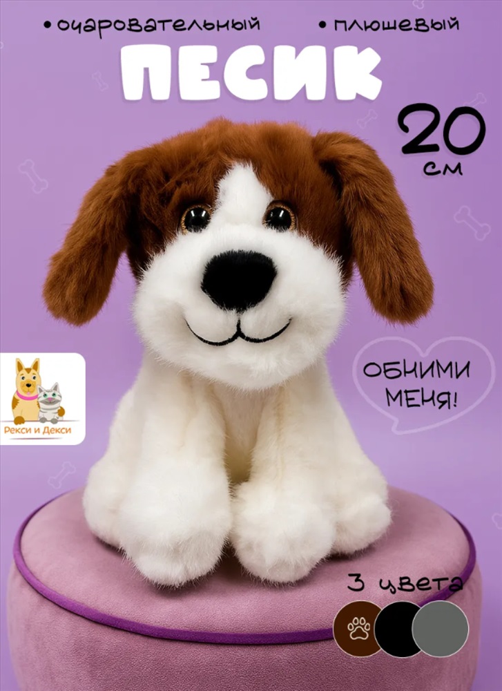 Плюшевая собака высотой 20 см станет классным сюрпризом для ваших близких. Её продуманный дизайн и реалистичные детали вызывают восторг у детей и взрослых. Наполнитель из синтепуха гарантирует, что игрушка сохранит свою форму даже после длительного использования, обеспечивая долгие годы радости.