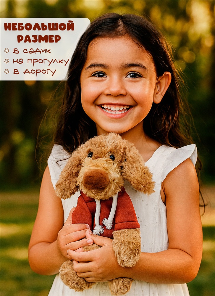 Страна: Китай Мягкая плюшевая игрушка в виде собаки коричневого цвета высотой 25 см станет идеальным подарком для любого возраста. Эта пушистая собачка с реалистичными деталями и милыми лапками принесет радость и уют в ваш дом. Изготовленная из высококачественных материалов, она обладает антистрессовыми свойствами - лапки с шариками, что делает ее отличным выбором для снятия напряжения после долгого дня. Игрушка устойчива и сохраняет форму даже после многочисленных обнимашек, что делает ее долговечной и надежной. Она станет прекрасным подарком на день рождения, Новый год или 8 марта для вашей подруги, дочки или внучки. Эта собака не только порадует детей, но и станет стильным элементом интерьера, добавляя уют и тепло в любую комнату. Плюшевая собачка способствует улучшению качества сна, создавая атмосферу комфорта и безопасности. Ее компактный размер позволяет брать ее с собой в поездки, чтобы всегда иметь под рукой источник радости и спокойствия. Эта игрушка станет верным спутником для вашего ребенка, помогая развивать воображение и эмоциональную привязанность. Игрушка в трех цветах. Подарите своим близким радость и уют с этой классной плюшевой собакой, которая станет неотъемлемой частью их повседневной жизни. Она идеально подходит для детей от трех лет и старше, обеспечивая безопасность и комфорт в использовании. Выбирая эту игрушку, вы дарите не просто вещь, а источник положительных эмоций и теплых воспоминаний. Комментарии к товару