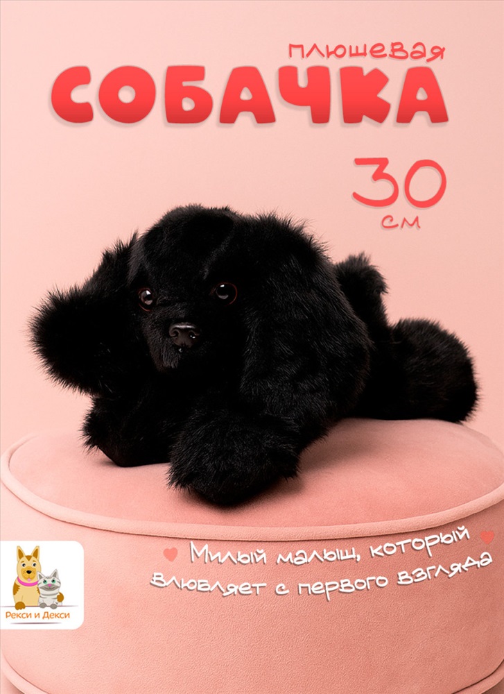 Мягкая плюшевая игрушка обнимашка собака 30 см, черная