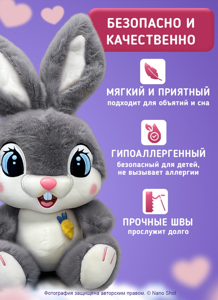 Плюшевая игрушка в виде зайца — идеальный выбор для тех, кто ищет мягкого друга для сна или милого компаньона для игр. Этот зайчик станет отличным подарком на 8 марта, Пасху или день рождения. Он прекрасно подойдет как для девочек, так и для малышей, создавая атмосферу уюта и тепла. Изготовленный из высококачественных материалов, этот плюшевый зверь обладает мягкой текстурой, что делает его идеальным для обнимашек. Игрушка станет верным спутником в садике, а также поможет успокоить ребенка перед сном. Смешные и милые черты зайца привлекут внимание и подарят радость как детям, так и взрослым. Плюшевая игрушка — это не только детская радость, но и замечательный подарок подруге, маме или девушке. Она станет символом заботы и внимания, а также отличным дополнением к любому празднику. Зайчик может стать любимым другом для внучки или дочки, а также оригинальным подарком на день рождения. Эта мягкая игрушка подходит для всех возрастов и станет прекрасным элементом декора в детской комнате. Плюшевый зайчик легко стирается и сохраняет свой первоначальный вид, что делает его идеальным выбором для активных игр и спокойного сна. Выбирая эту игрушку, вы дарите не просто предмет, а эмоции, воспоминания и уют. Плюшевая игрушка зайца — это не просто игрушка, а верный друг, который всегда рядом.