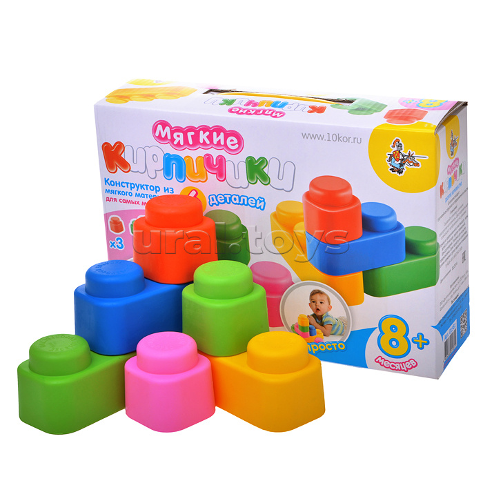 • В наборе 6 деталей. • Разнообразие форм и цветов. • С помощью этого яркого конструктора ребенок сможет построить башенки, домики и другие конструкции. • Детали имеют простую систему скрепления, которую легко освоят даже самые маленькие непоседы! • Детали конструктора легко моются. • Материал конструктора абсолютно безопасен для детей. • Развивают мелкую моторику рук, сенсорное и визуальное восприятие, воображение, тактильные ощущения, конструкторские и творческие способности. • Состоят из прорезиненного пластика. • Соответствуют требованиям безопасности и стандартам качества продукции. • Для детей от 8 месяцев.