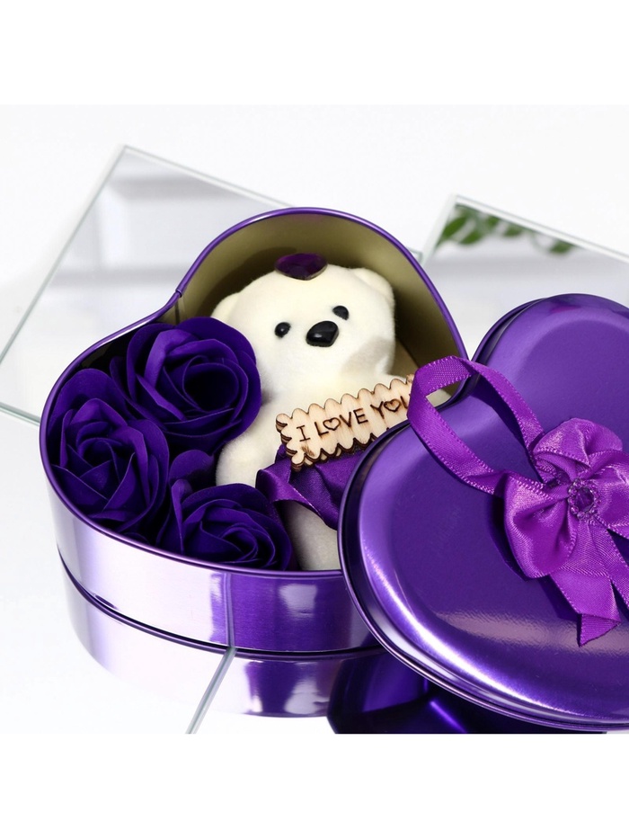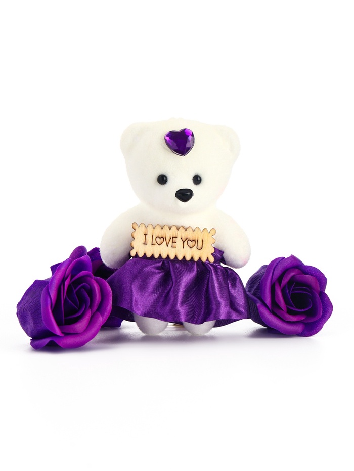 Мыльные розы и медвежонок, набор фиолетовый
