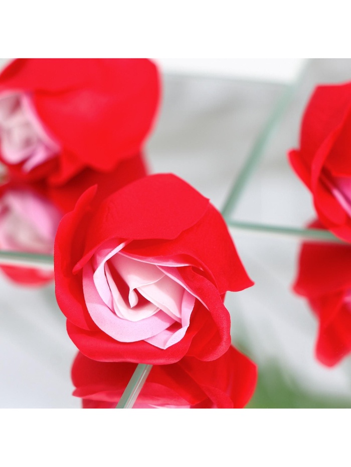 Благодаря точному повторению мелких деталей мыльные розы схожи с настоящими цветами. Композиция наполняет помещение тонким и ненавязчивым цветочным ароматом.