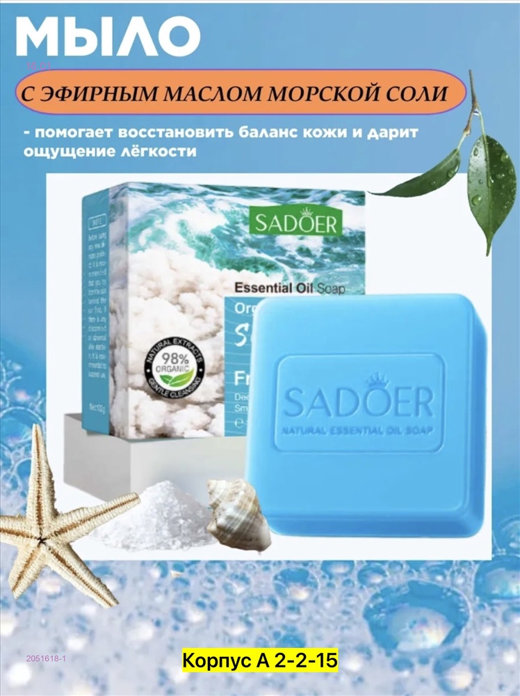 Sadoer Натуральное органическое мыло не содержитвредных соединений ПАВ. Оно бережно очищаеткожу рук, лица и тела.