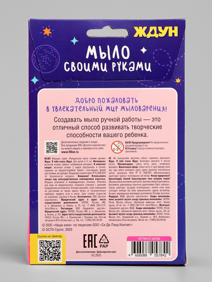 Набор для изготовления мыла «Я тебя очень Ждун» - набор, с помощью которого ребенок изготовит кусочек мыла с изображением узнаваемого персонажа! Мыло, созданное своими руками, станет замечательным подарком, а также сделает гигиенические процедуры для малыша интересными и желанными.