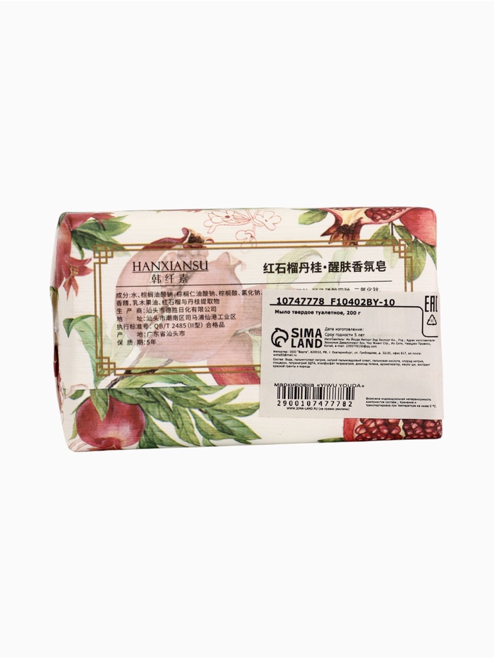 Страна: Китай В боксе: 100 шт Состав: См. на упаковке Материалы: см. на упаковке Фасовка: по 1 шт Индивидуальная упаковка: Без упаковки Габариты товара: 43 см × 31 см × 22 см Сертификат: ЕАС Набор: Нет Цвет: Красный, Белый Для кого: Унисекс Вес, г/Объём, мл: 200 Вес, г: 200 Вид упаковки: Бумажная обертка Адресат: Без адресата Область применения: Для рук, Для тела Аромат: Корица, Гранат, Парфюм Тип: Твёрдое Вид мыла: Туалетное, Косметическое Возраст: Для взрослых Назначение: Очищение, детокс Мыло твердое «Красный гранат и корица» — это волнующее сочетание яркости и тепла, которое превращает каждое умывание в настоящий момент наслаждения. Аромат свежего граната, наполненный сладкими и сочными нотами, в сочетании с пряной корицей создает уникальную гармонию, пробуждая чувства и наполняя атмосферу уютом. Это мыло не только бережно очищает кожу, но и увлажняет её, придавая мягкость и бархатистость. Экстракты натуральных компонентов заботятся о вашем теле, а насыщенный аромат останется с вами на протяжении всего дня. Прекрасный выбор для тех, кто ценит насыщенные и волнующие ароматы, а также желает окружить себя атмосферой тепла и уюта. Состав: вода, пальмитолеат натрия, натрий пальмоядровый олеат, пальмовая кислота, хлорид натрия, глицерин, тетранатрий ЭДТА, этилфосфат тетранатрия, диоксид титана, ароматизатор, масло ши, экстракт красной гранты и корицы. Комментарии к товару