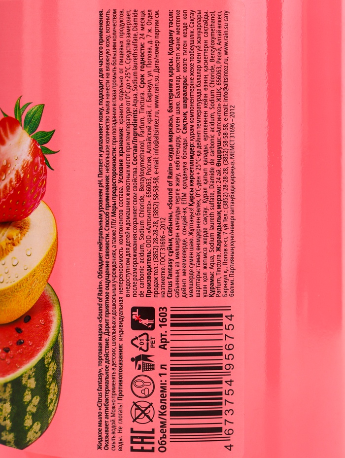 Габариты: 8,5 x 8,5 x 23 Доставка: Платная Страна: Россия В боксе: 12 шт Состав: См. на упаковке Материалы: см. на упаковке Фасовка: по 1 шт Индивидуальная упаковка: Без упаковки Сертификат: СТР Вес, г/Объём, мл: 1000 Область применения: Для рук, Для тела Аромат: Сочные фрукты Тип: Жидкое Вид мыла: Антибактериальное Жидкое мыло Rain «Солнечный шейк» с антибактериальным эффектом обеспечивает надёжную защиту и бережный уход за кожей рук каждый день. Формула эффективно очищает, устраняет до 99% бактерий и при этом сохраняет естественный баланс кожи. Преимущества средства: