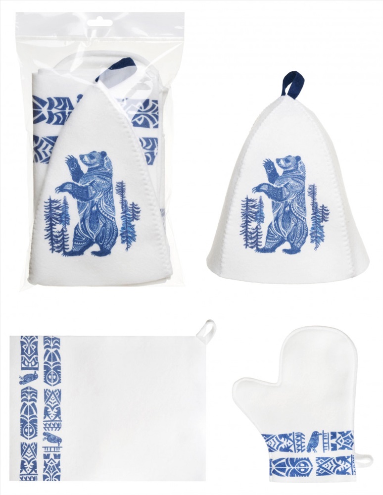 Набор для бани Медведь, шапка + коврик + рукавица Комментарии к товару
