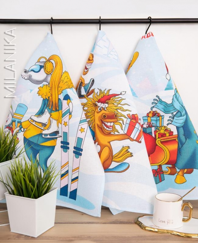 Набор 3 полотенца "Конь в пальто" , вафля