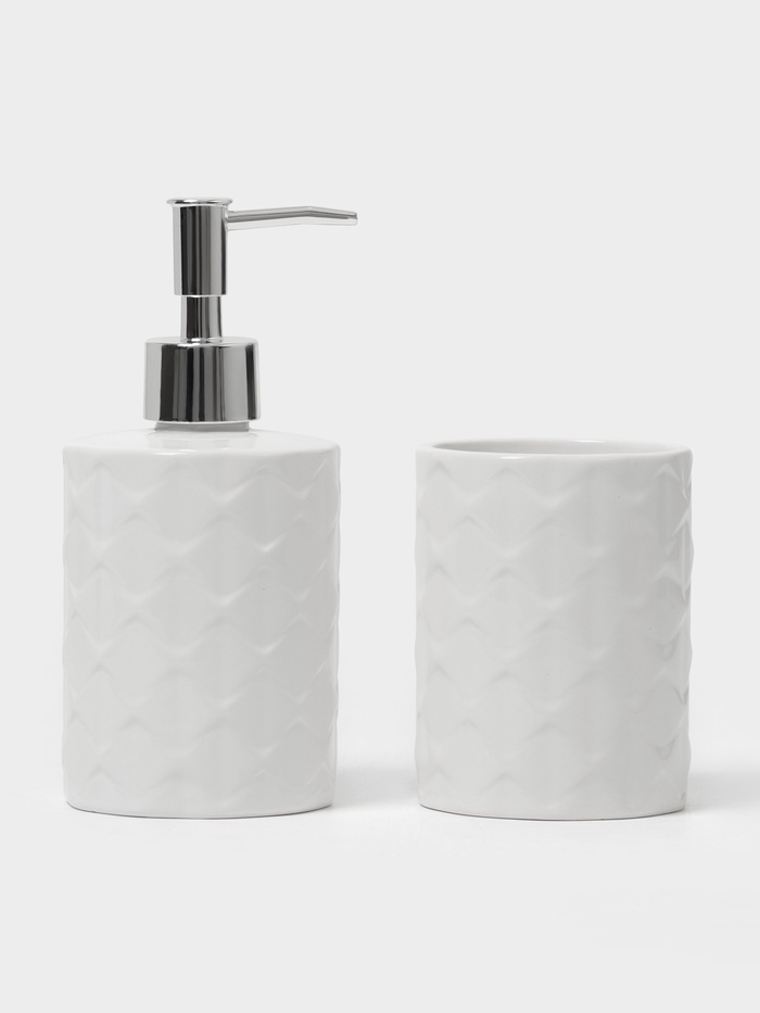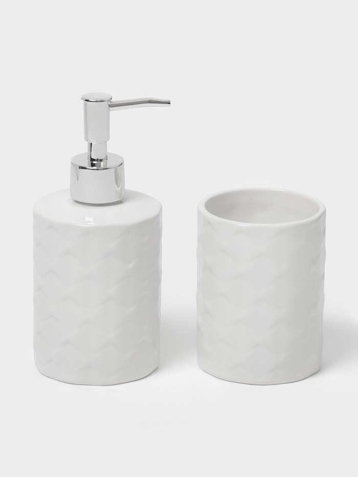 Комплектация1. Стакан - 1 шт 2. Дозатор - 1 шт ДополнительноВ связи с особенностями производства керамических изделий допускается незначительное количество вкраплений (около 1 мм) и непрокрас на небольших участках. Это не влияет на потребительские свойства товара. Комментарии к товару