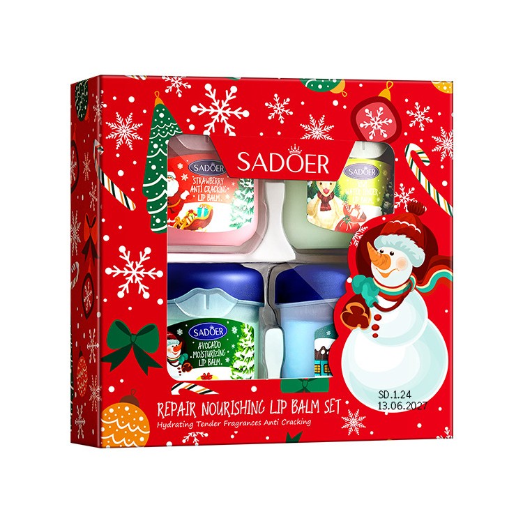 Набор бальзамов для губ Sadoer питает и увлажняет кожу губ, предотвращает потерю влаги, помогает справляться с шелушениями и мелкими трещинками.