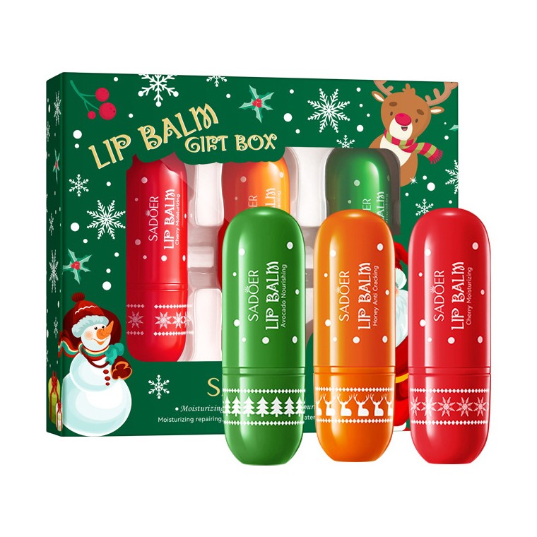 Набор состоит из 3-х бальзамов для губ: "Авокадо", "Вишня", "Мед" Яркая новогодняя упаковка делает этот набор прекрасным подарком к Новому Году и Рождеству! Способ применения: Нанесите бальзам на кожу губ. Используйте по мере необходимости.