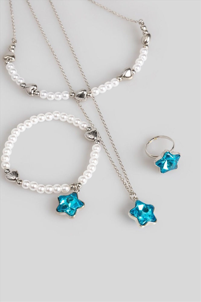 Сезон: Демисезон Набор (бусы+браслет+кольцо) детский Starka серебристый