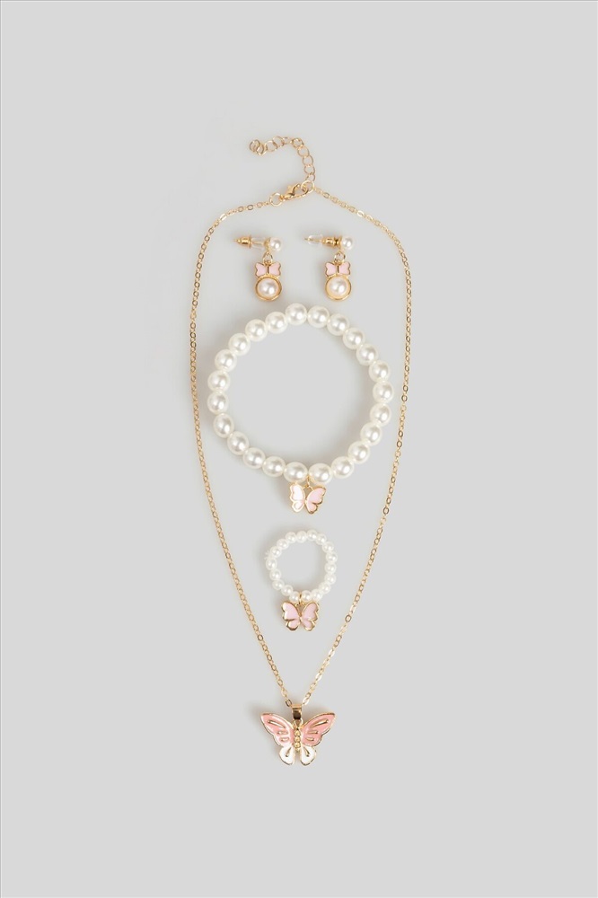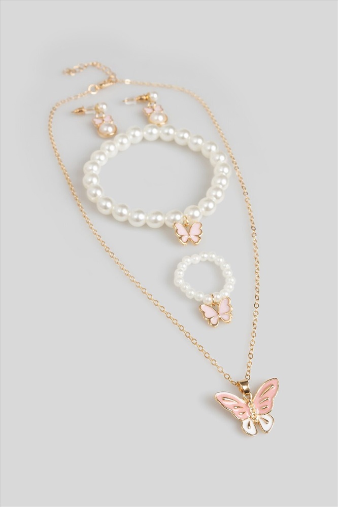 ID товара: 1092712 Состав: 90% Недрагоценный металл, 10% Пластик Сезон: Демисезон Набор (бусы+браслет+кольцо+серьги) дет. Alexis светло-розовый Комментарии к товару