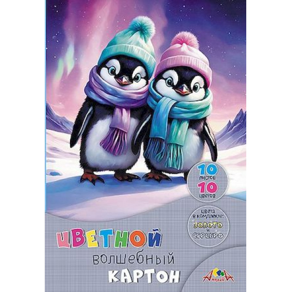 Наименование: Набор цветного картона А4 10л 10цв волшебного "Друзья пингвинята" С0010-46 АппликА