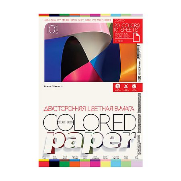 Наименование: Набор цветной бумаги двусторонней А4 10л 20цв "ДВУСТОРОННЯЯ" 11-410-350 Альт Упаковка: 1\ 48 Страна: Россия Производитель: Альт min цена: 116,97 руб. Комментарии к товару