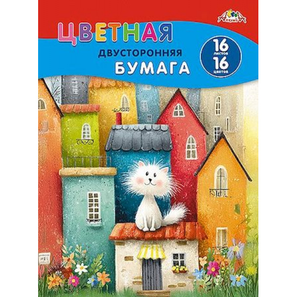 Наименование: Набор цветной бумаги двусторонней А4 16л 16цв "Кот на крыше" С4443-21 АппликА