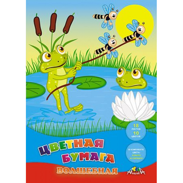 Наименование: Набор цветной бумаги волшебной А4 18л 10цв "Веселые лягушата" С0192-29 АппликА