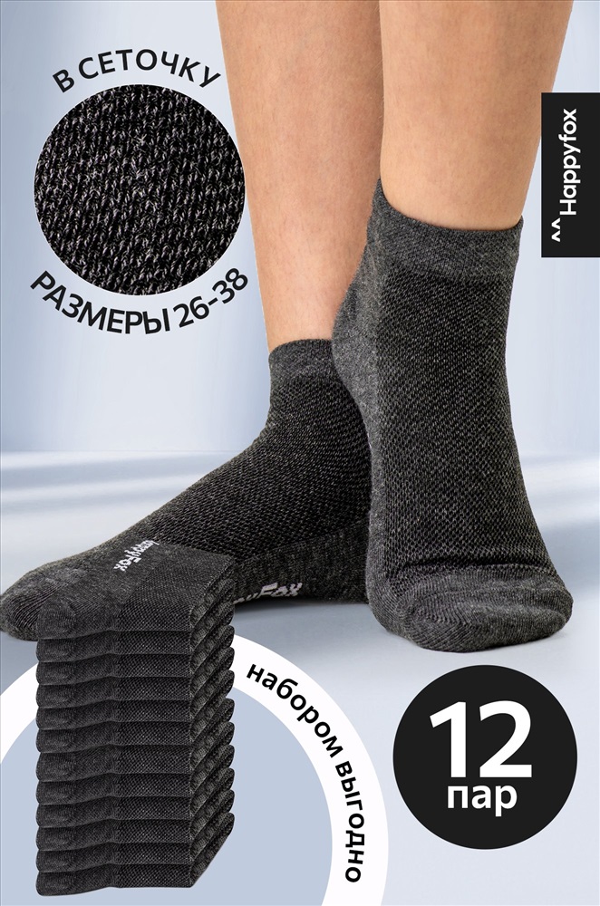 Набор детских носков из 12 пар выполнен из нежного хлопка с добавлением полиамида и эластана. Легкие летние носки в сеточку также подойдут как демисезонные. Однотонные носки для мальчиков и девочек представлены в базовом цвете антрацит. Повседневные носки из хлопкового трикотажа приятны к телу и позволяют стопе дышать. Благодаря полиамиду и эластану в составе они отлично выдерживают частые стирки без потери формы и размеров. Носочки для детей очень удобны и станут лучшим решением для похода в детский сад или школу, занятий спортом, а также для дома. Трикотажные темно-серые носки универсальны под любой образ и подойдут на каждый день летом или весенними днями. Практичный комплект носков с сеточкой прослужит долго, а носков много не бывает! Комментарии к товару