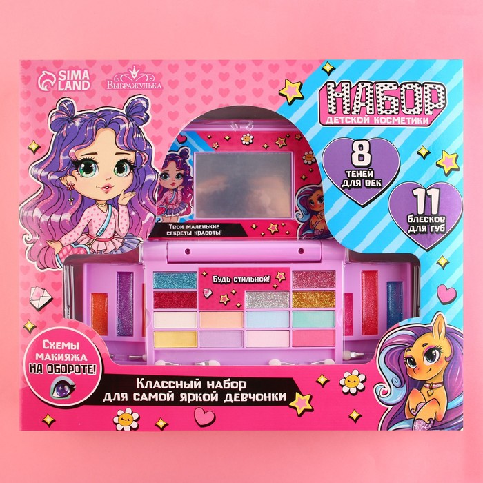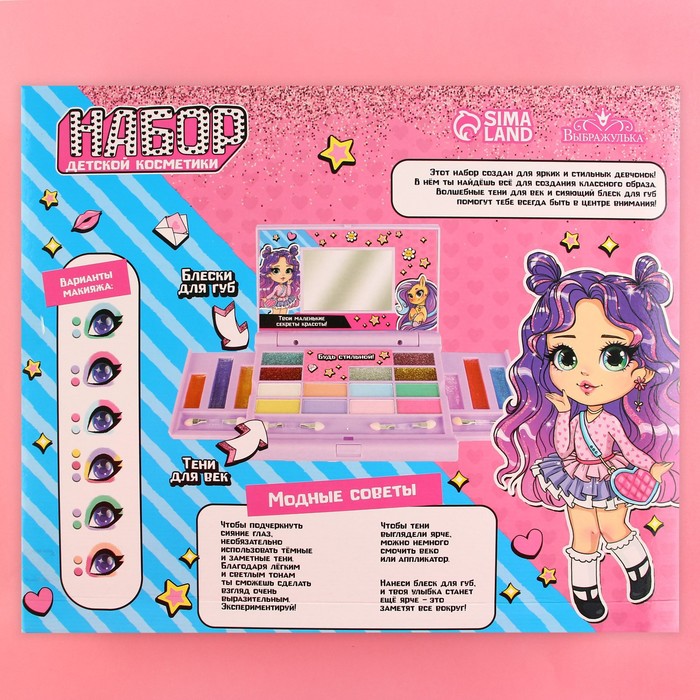 косметика абсолютно безопасна для детейнабор идеально подойдёт для первых бьюти-экспериментов малышкитени для век детские содержат минимум пигмента и берегут кожу ребенка, легко смываются теплой водойблеск для губ имеет ненавязчивый аромат , комфортно ощущается на кожеКосметика в наборе позволит вашей малышке освоить навыки нанесения макияжа, научиться сочетать цвета, развить аккуратность и чувство меры – и все это в процессе увлекательной игры.