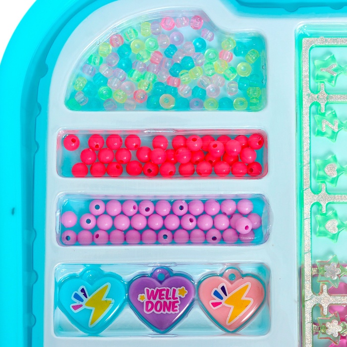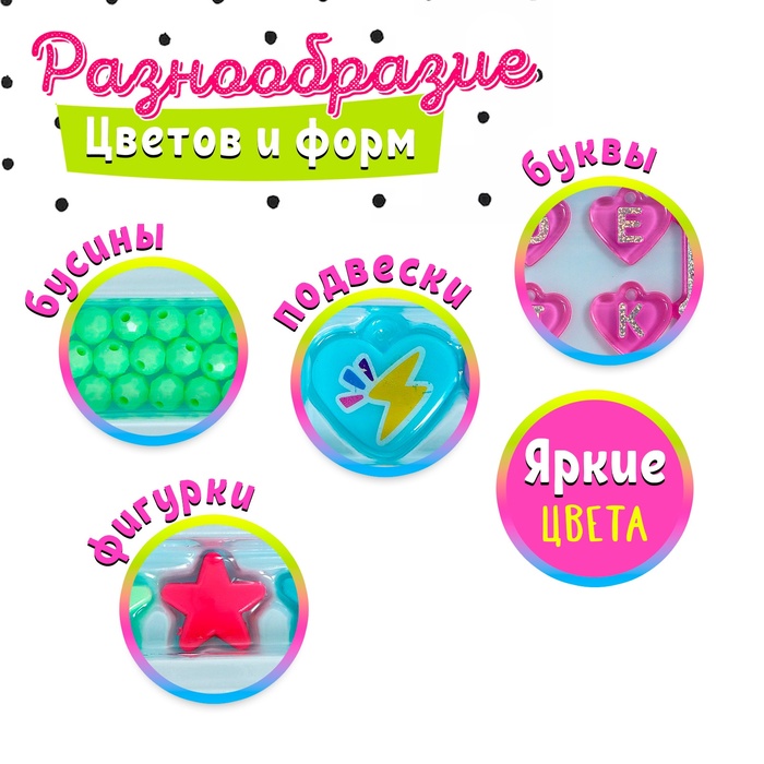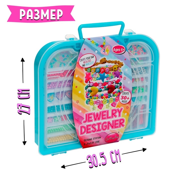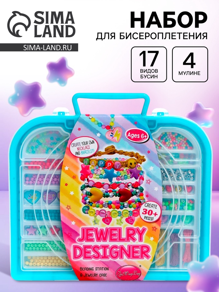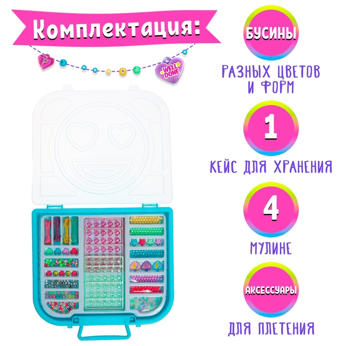 Страна: Китай В боксе: 18 набор Состав: Пластик Материалы: пластик Фасовка: по 1 набор Индивидуальная упаковка: Без упаковки Габариты товара: 30,8 см × 27,5 см × 5,8 см Сертификат: Не подлежит сертификации Для кого: Для девочки Возраст: От 7 лет Вид: Набор украшений В комплекте: Нитки, Бусины Для создания: Ожерелья, подвески, бусы, Браслеты Тематика: Стиль и красота Фиксированная цена: Да Ребёнок в поисках нового хобби? Предложите ему заняться бисероплетением. Из ярких и красочных бусин у него получится создать первые авторские украшения — ожерелья, браслеты, брелоки, кольца или бусы. Юный творец сможет смастерить парные украшения для себя и друзей. В кейсе есть всё необходимое для творчества: 17 видов элементов, из которых можно делать аксессуары в разных стилях. Занятие бисероплетением поможет усовершенствовать мелкую моторику, потренировать усидчивость и проявить креативность. Набор для творчества пригодится для домашнего досуга и занятий в кружках. Что в наборе?