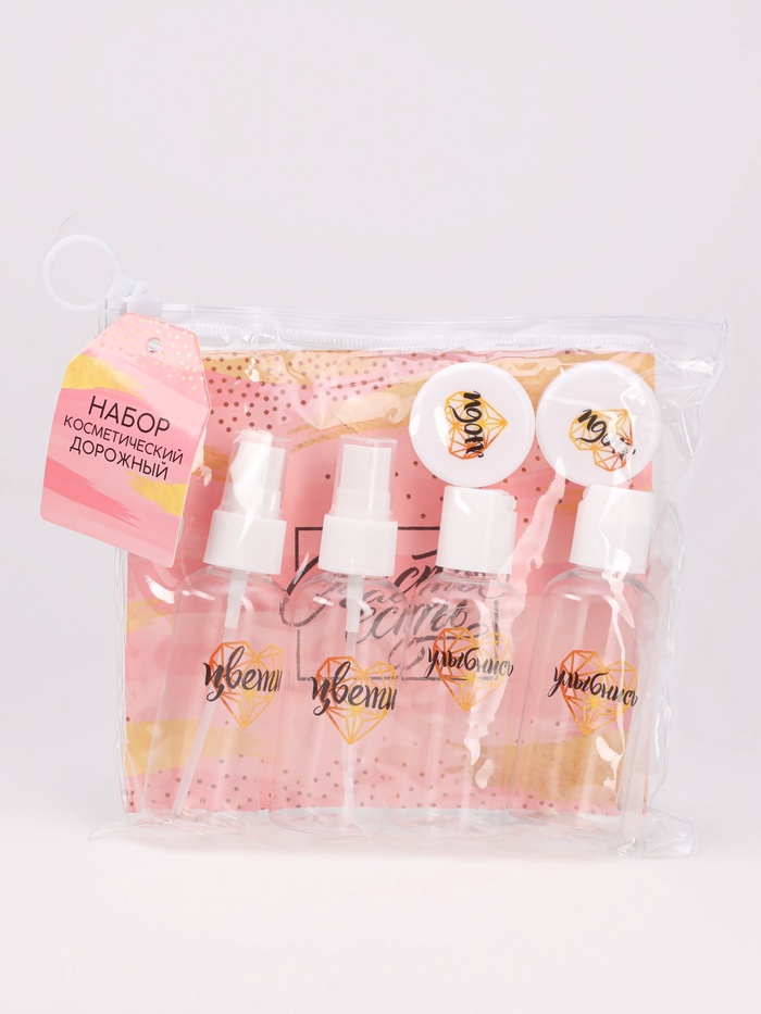 Чтобы чувствовать себя комфортно в любом путешествии, нужно иметь под рукой всё необходимое. В том числе любимые уходовые средства, шампуни, гель для душа, крем. Наш набор станет отличным подарком и позволит взять с собой все средства в небольших объёмах: они не займут много места и будут лёгкими. Все составляющие набора многоразовые и прослужат ещё не один отпуск.