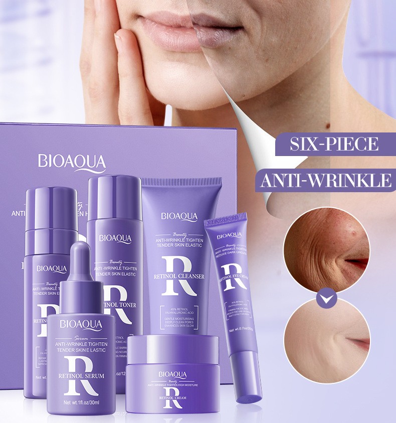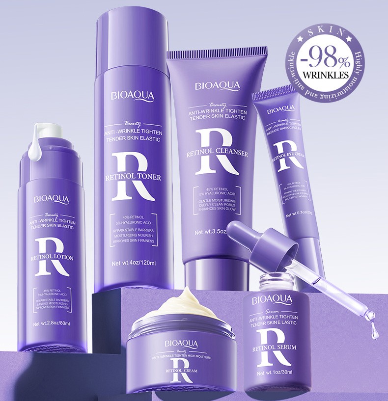 Подарочный набор для лица с ретинолом и гиалуроновой кислотой BIOAQUA - это полноценный комплексный набор для ухода за кожей лица и в первую очередь для борьбы против морщин. Увлажняет кожу, борется с сухостью, возвращает ей нежность и упругость. Кожа приобретает здоровый, сияющий вид. Набор подходит коже всех типов, склонной к увяданию и морщинам.