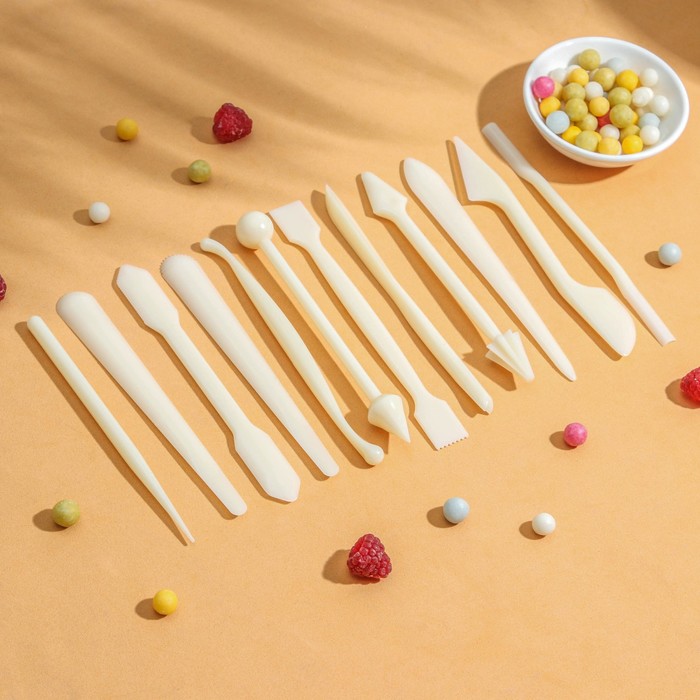 - Применяются для надрезов, подрезки мастики, вырубки отверстий, выдавливания необходимой текстуры и объёма на мастике, создания рюш и оборок, тиснения и множества других необходимых операций.