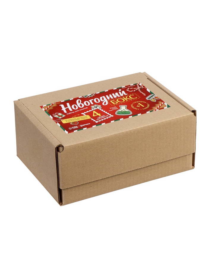 Габариты: 24,5 x 10,5 x 17,5 Страна: Россия В боксе: 18 шт Состав: Пластик, реагент Материалы: пластик, реагент Фасовка: по 1 шт Индивидуальная упаковка: Картонная коробка Сертификат: Не подлежит сертификации Возраст: От 14 лет Количество опытов: 15 Вид науки: Химия Вид исследований: Опыты с реагентами Погрузитесь в атмосферу волшебства и науки с набором для опытов «Новогодний бокс»! Этот праздничный комплект собрал в себе яркие, эффектные и безопасные эксперименты, которые позволят ребёнку почувствовать себя настоящим исследователем. Внутри коробки — сразу четыре полноценных набора для опытов и дополнительный новогодний сюрприз. Все эксперименты подобраны так, чтобы увлечь ребёнка зрелищными реакциями, знакомыми ароматами и красочными превращениями. Это отличный способ совместить игру, творчество и первые шаги в мире химии. Преимущества