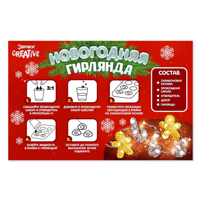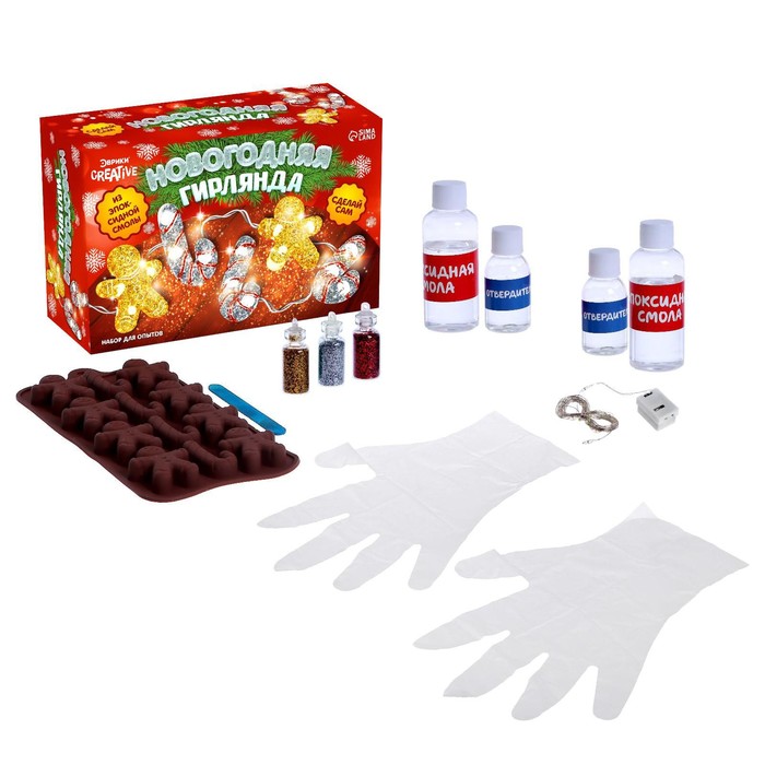 С интересным опытом «Новогодняя гирлянда» юный изобретатель проведёт увлекательный вечер за созданием сказочного украшения из эпоксидной смолы.
