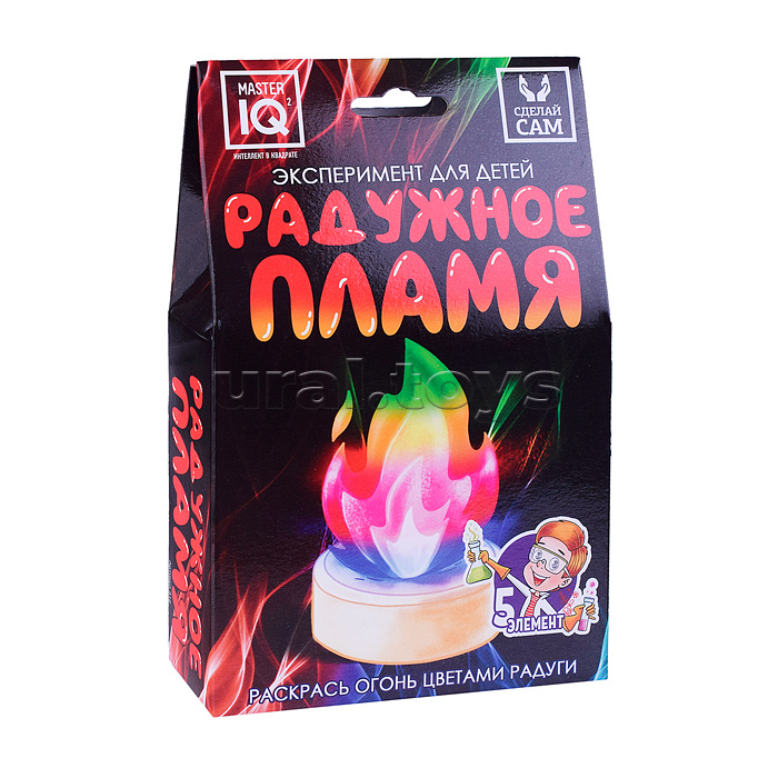 Создайте свою огненную «радугу»! В ходе проведения опыта пламя окрасится различными цветами в зависимости от того, какое из веществ вы добавите. Или можете добавить сразу их все и наблюдать, как огонь горит тремя разными цветами одновременно. Состав: сухое горючее, хлорид кальция, хлорид натрия, сульфат меди, фольга, перчатки, инструкция. Для детей от 8 лет. Соответствует требованиям безопасности продукции.