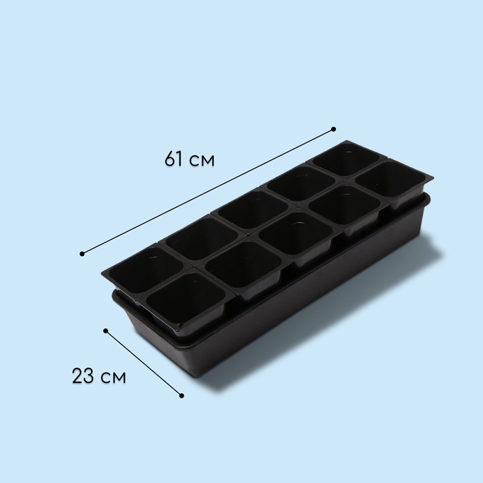 - 10 отдельных стаканов по 1 литру: можно выращивать разные культуры или несколько растений одного сорта. Каждый стакан обеспечивает достаточно пространства для корней.