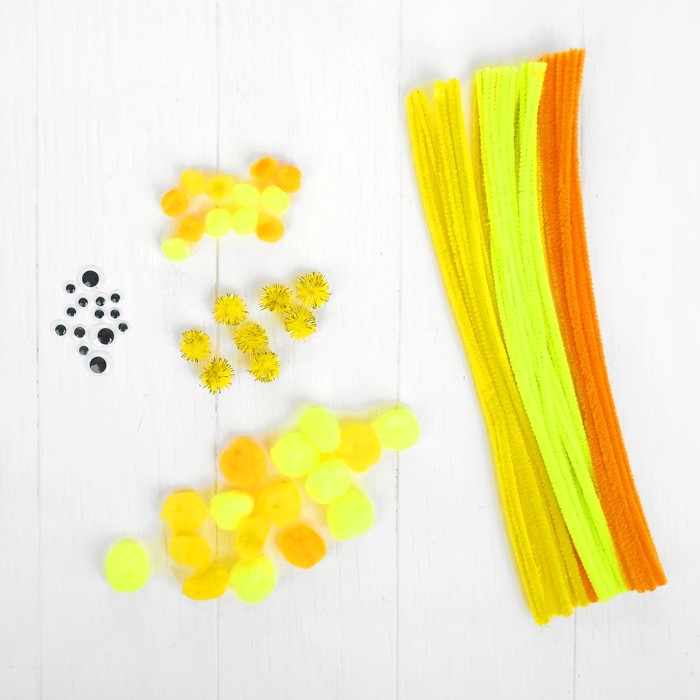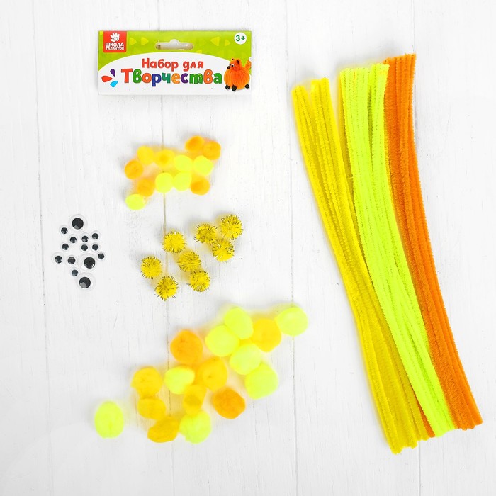 Набор для творчества поможет ребёнку создать пушистую поделку в виде причудливого зверька. Малышу остаётся только придумать, какое животное он будет делать.