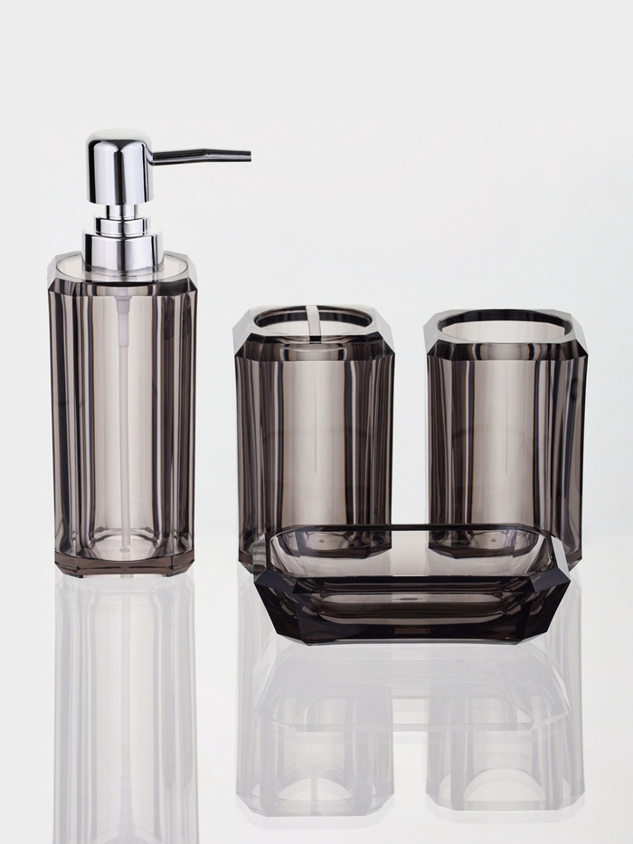 Набор для ванной "Кристалл" 4 предмета (дозатор, 2 стакана, мыльница)