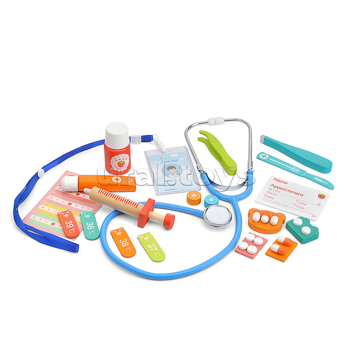 Код: 493622 Штрихкод: 6978459071237 Страна производитель: Китай Размеры упаковки: 5 x 25 x 21.5 см Количество в коробке: 40 • В наборе: - фонендоскоп (с функцией прослушивания) - аксессуары из дерева (6 предметов). - муляжи таблеток. - карточка. - наклйки. - бейджик. • Соответствует требованиям безопасности продукции. • Для детей от 3-х лет. Комментарии к товару